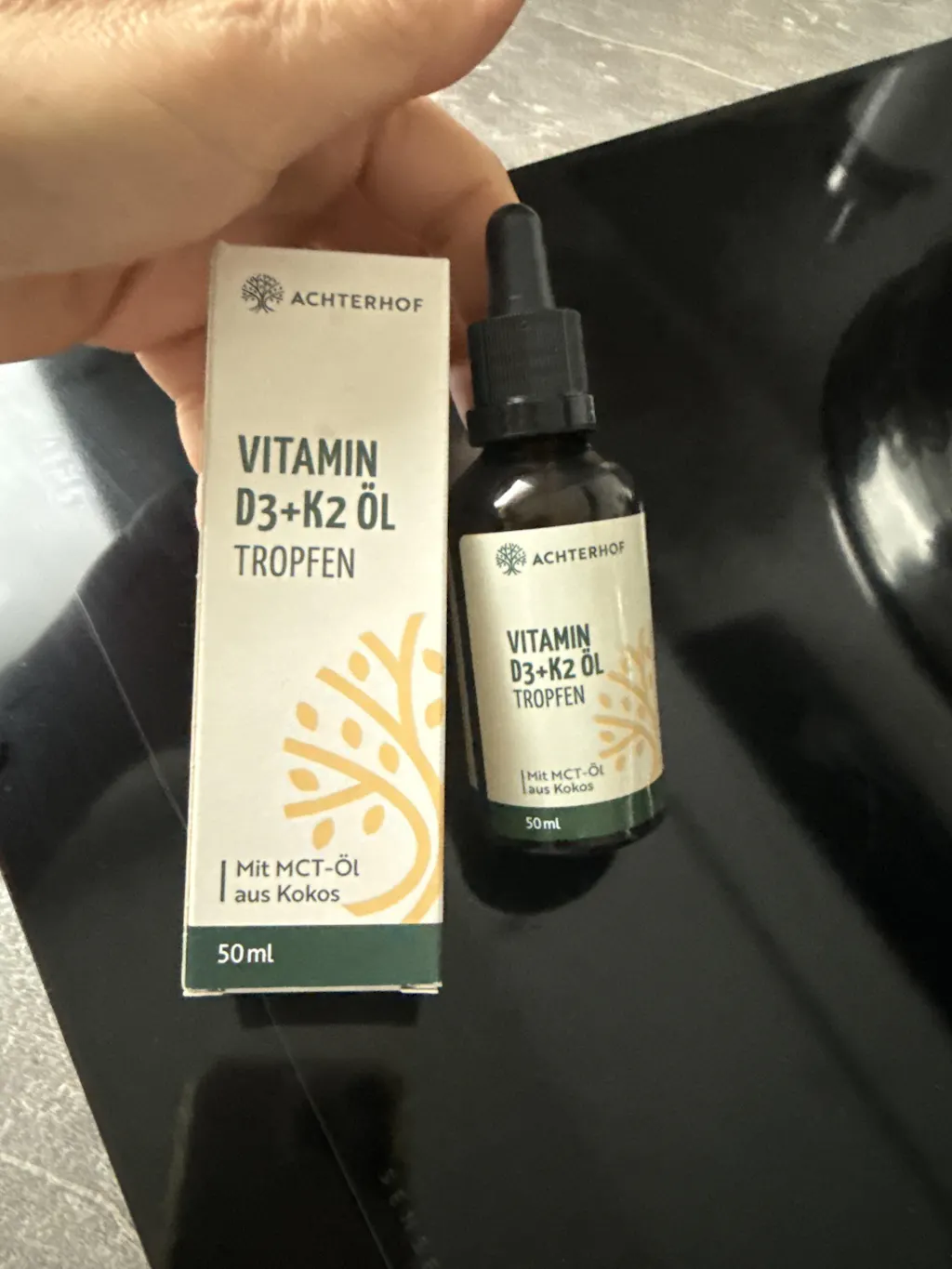 Gerade in unseren Breitengraden und besonders in der kalten Jahreszeit ist es oft schwierig, die von der DGE empfohlene Tagesmenge von 20 µg Vitamin D pro Tag zu erreichen. Mit den D3+K2 Tropfen vom Achterhof, gelöst in hochwertigem, naturreinem MTC-Öl, ist man das ganze Jahr über optimal mit diesen beiden Vitalstoffen versorgt.